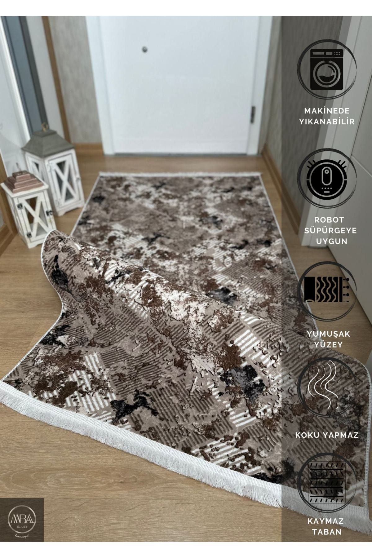 Viskon Dokuma Halı Kaymaz Taban Yıkanabilir Salon Oda Mutfak Halısı Vena Gri